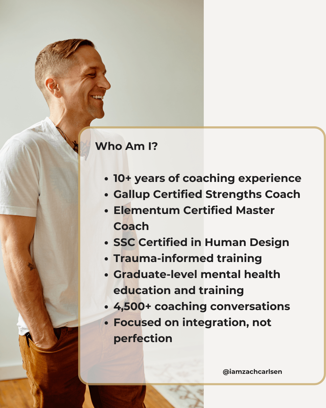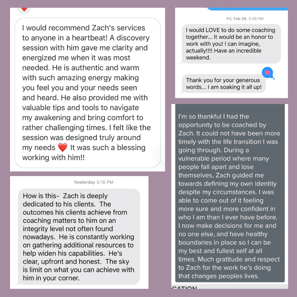 "I was on a journey to answer the question "Who am I?" I found that Zach was just as curious & fired up about my goal as I was. He went above & beyond, using his creativity & knowledge to give me a deep understanding of each strength. I fully trust him. Having a better understanding of who I am has helped me take the reins to my life to have more success getting what I want in life & relationships."