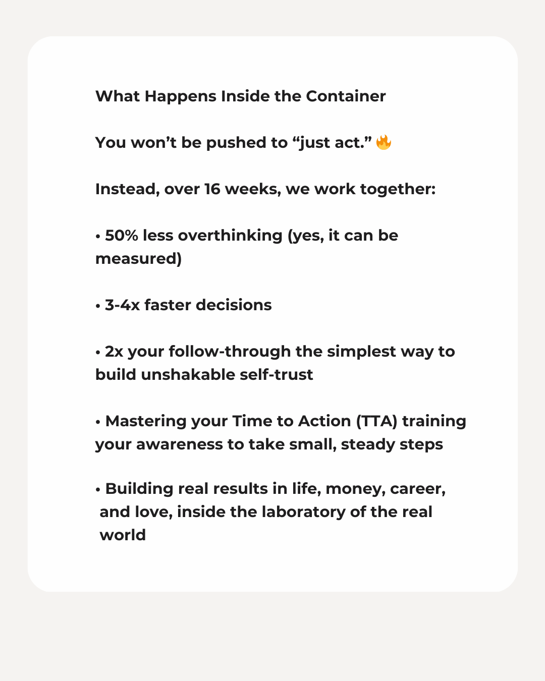 For 12 weeks, we move in cycles of clarity → action → refinement.